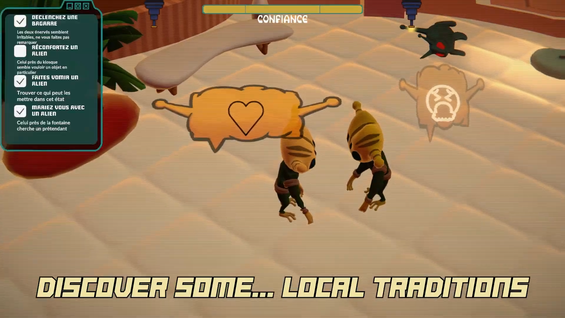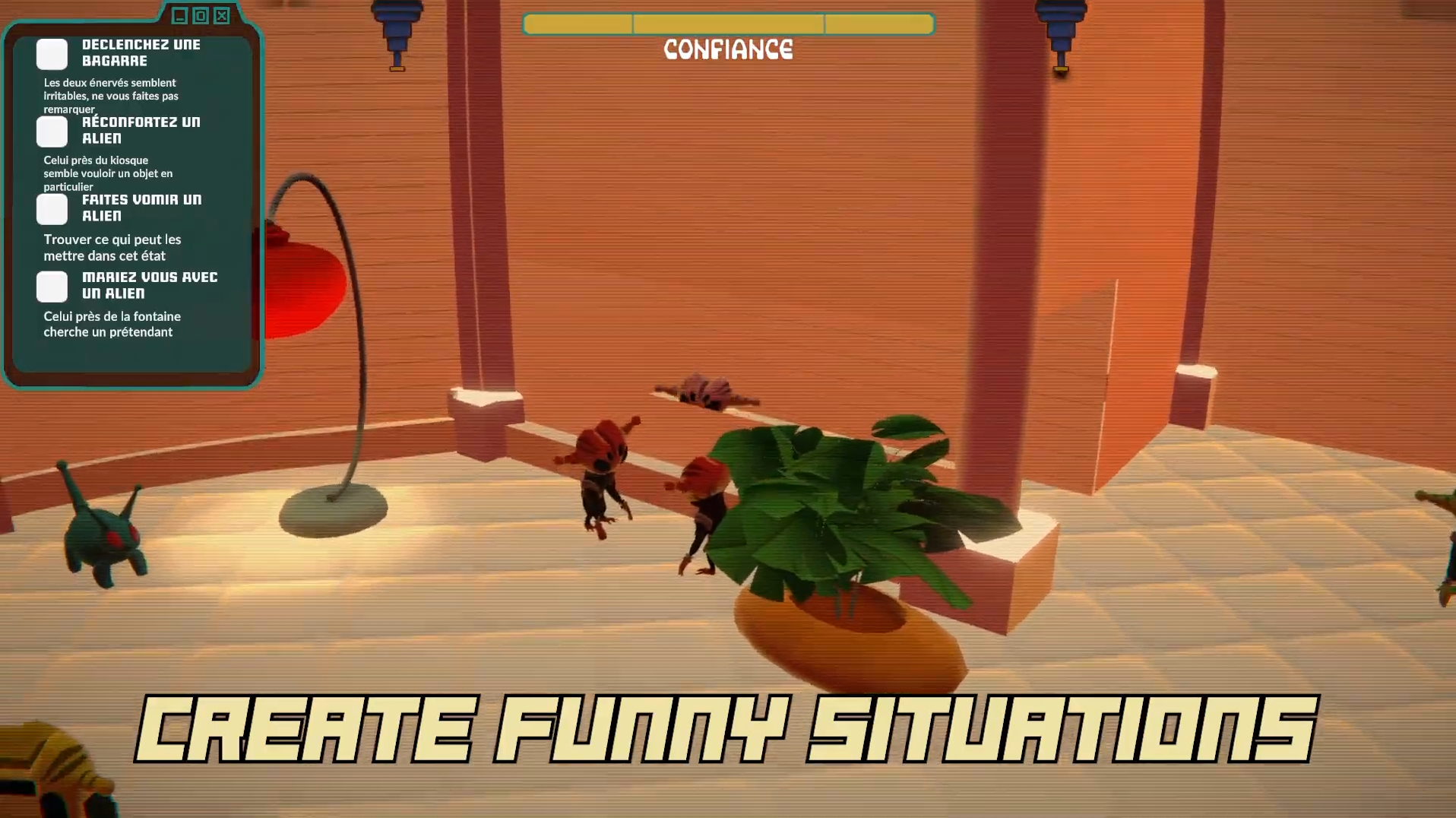 Embody a crazy scientist controlling the emotions of an alien in order to comprehend its twisted society without being discovered.